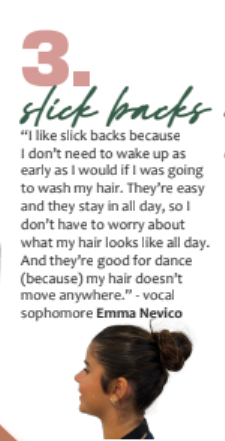 I found this interview a lot of fun as I asked a classmate of mine whose hair is in a slickback nearly every day. I was interested to hear the reasoning behind this, and I think this idea was a perfect addition to the spread all about trends. While I did have to ask a few follow-up questions, she ended up providing me with a lot of detail, and the rationale in her personal life.